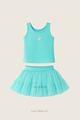 The matching skort features cotton base shorts for comfort and coverage, layered with a lightweight polyester mesh skirt that adds beautiful movement and a playful athletic look. Whether your little one is heading to school, playing outside, or relaxing at home, this set is made to move with her all day.